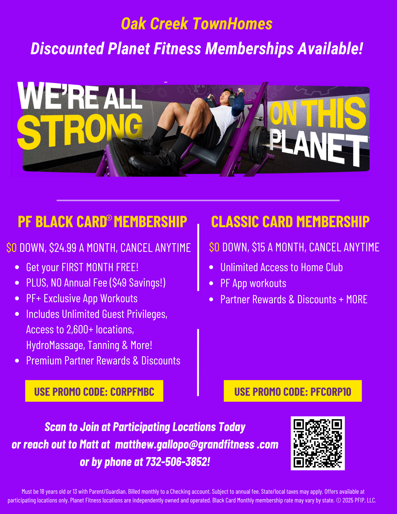 Planet Fitness Offer for Oak Creek Residents